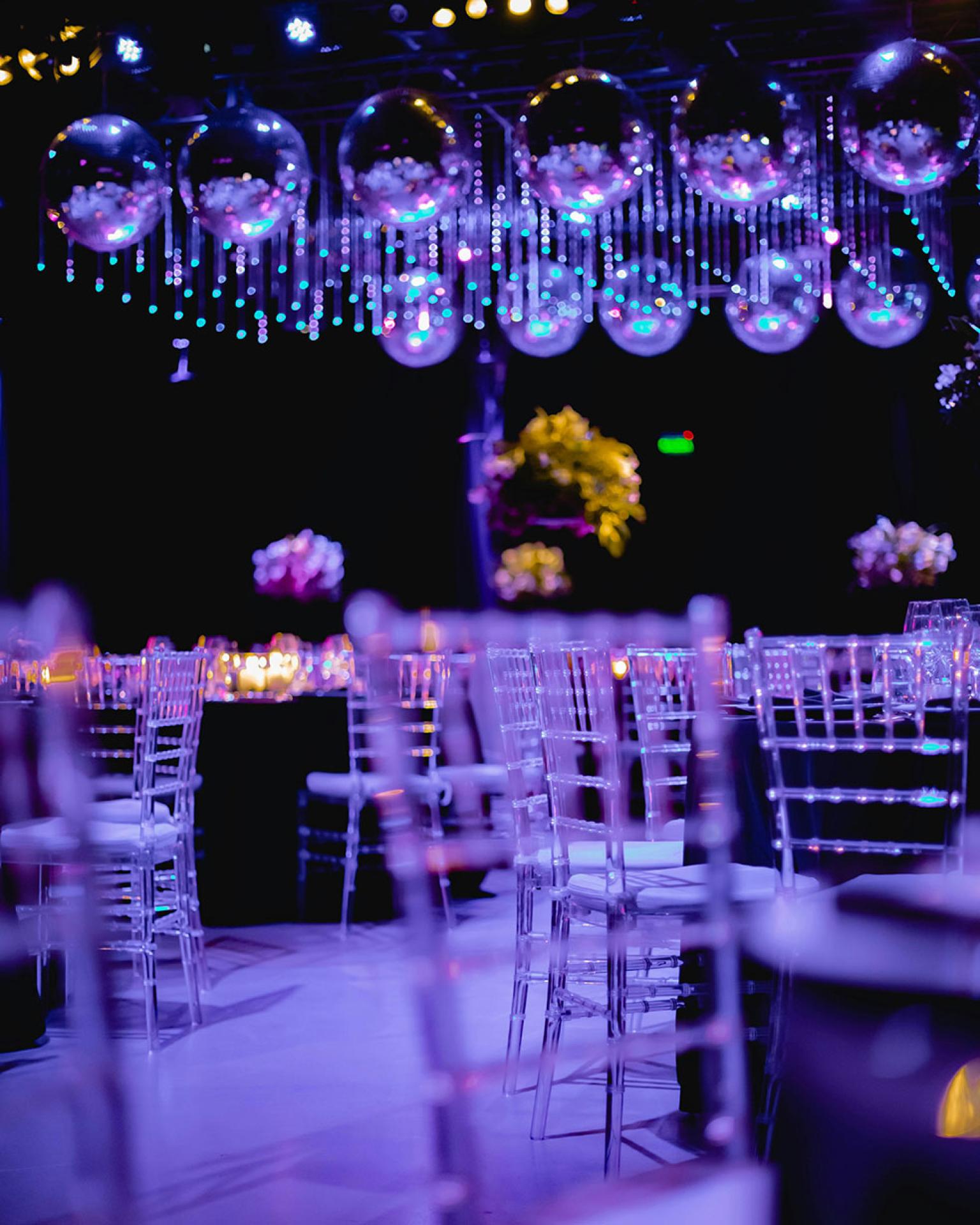 Éléments décoratifs personnalisés (néons, fond, covering, accessoires thématiques)